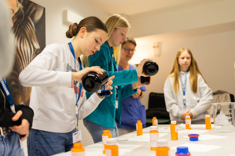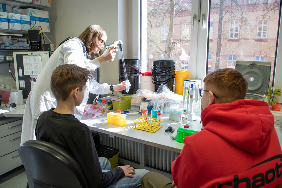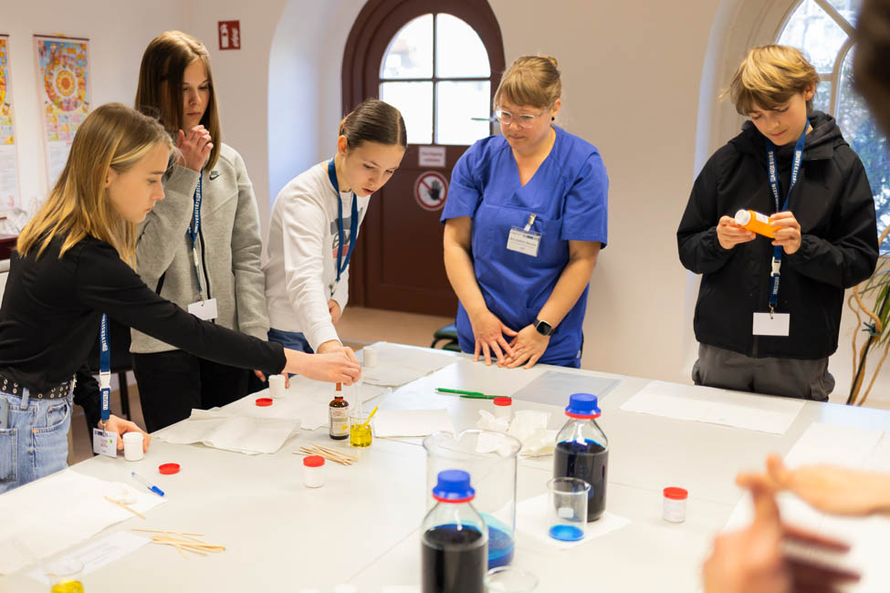 A total of 40 young people aged between 11 and 17 took part. The special highlights included practical stations such as making a cream, learning about first aid measures, measuring vital signs and getting to know operating theatre instruments.